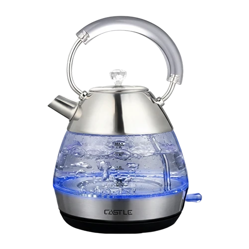 غلاية مياه كهربائية، 1.7 لتر، 2200 وات، زجاج، EK2217G - فضي